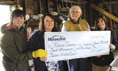 MutualOne Bank of Framingham donated $2,500 to Natick Community Organic Farm’s summer youth program. Pictured, left to right, are: David Parnas, volunteer, Natick Community Organic Farm; Marie Harrington, Natick branch manager, MutualOne Bank; Lynda Simkins, director of the farm; and Rachel Stewart, administrative director of the bank’s charitable foundation.