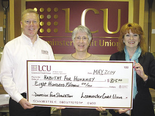 Leominster Credit Union’s Shred-a-Thon, where sensitive documents are securely destroyed, raised $815 for Habitat for Humanity of North Central Mass. Pictured, left to right, are: John J. O’Brien, president and CEO, Leominster Credit Union; Maggie Monroe-Cassel, executive director, Habitat For Humanity/North Central Massachusetts; and Joanne Lattanzi, marketing manager of the credit union.