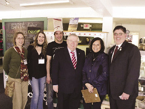 Isador’s Organics in Oxford raised $670 for its Hand Fruit Program – bringing fresh fruits to area schools – with its annual Chili Cookoff. Pictured, left to right, are: Debra Horan, Webster-Dudley Business Alliance president; Debra Rousseau, WDBA treasurer; Justin Szostakowski, owner, Isador’s Organics; State Sen. Richard T. Moore; Shereen Fahey, Webster branch manager, Commerce Bank; and Donald Bourque, WDBA director. Commerce sponsored the event; the WDBA co-hosted.