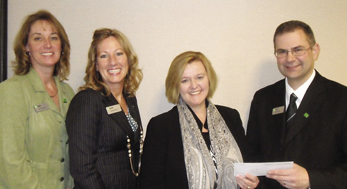TD Bank of Sturbridge donated $1,983 to The Bridge of Central Massachusetts, a Worcester-based human services provider. Pictured, from left to right, are: Laurie Benson, vice president and retail market manager, TD Bank; Andrea Rowe, assistant manager, TD Bank Sturbridge branch; Lorie Martiska, director of development, The Bridge; and Anthony Marini, assistant vice president and manager of the Sturbridge branch.