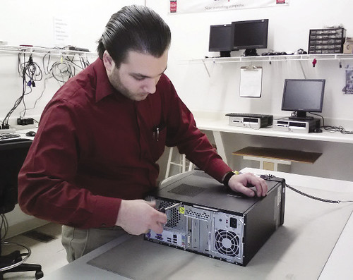 Hudson-based Bryley Systems and Yours for Children together raised $295 for the Hudson Food Bank and the Hudson Boys & Girls Club. The money was generated through a free giveaway of refurbished PCs in exchange for a suggested donation of $35 to either nonprofit. Pictured: Garin Livingstone, a senior technician with Bryley Systems.