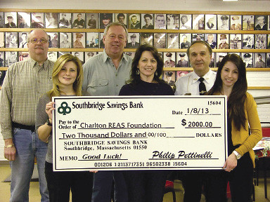 Southbridge Savings Bank donated $2,000 to the Charlton chapter of the Residential Energy Assistance for Seniors (REAS) Foundation. Pictured, from left to right, are: Carl Eckman; Erin Berthiaume; Rick Swenson; Elaine Materas, chapter director, REAS; Chief James Pervier; and Sabrina Webb, Southbridge Savings Bank’s Charlton branch manager.