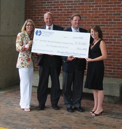 Beautiful Work The Harrington Memorial Hospital Auxiliary in Southbridge recently hosted an art auction at Old Sturbridge Village. More than 200 community members participated and raised $10,000 for Harrington's soon-to-be constructed cancer center. Pictured, from left to right, are: Suzanne Fantaroni, president of auxiliary; Ed Moore, president and CEO of Harrington Memorial; Alan Peppel, chairman of the hospital board; and Rebecka Lamarine, art auction event chairman.