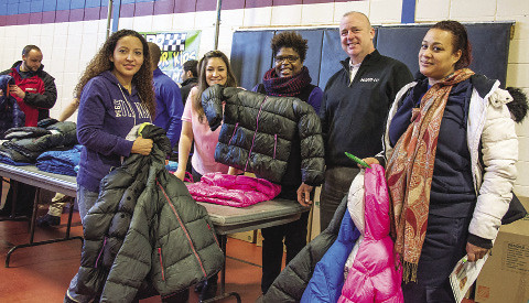 Worcester-based Harr Motor Group donated more than 225 new children’s coats to Friendly House in Worcester. Pictured: Staff at Harr Motor Group distributing coats.