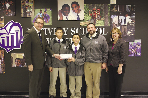 Southbridge Savings Bank donated $1500 to the Nativity School of Worcester. Pictured, from left to right, are: Ron Cooper, commercial lending and services, Southbridge Savings Bank; Alex Zequeira, president, Nativity School; and Bonnie Losavio, bank human resources manager.