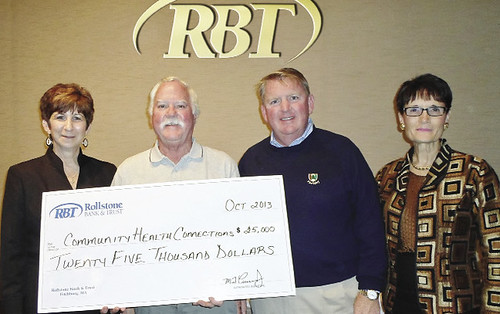 Worcester-based Rollstone Bank & Trust donated $50,000 to health care programs through its annual golf tournament. The main beneficiary was Community Health Connections (CHC) of HealthAlliance Hospital in Leominster. Pictured, left to right, are:Â Elizabeth Sodano of Community Health Connections; Dr. Robert J. Babineau Jr. of the CHC; Martin F. Connors Jr., president and CEO, Rollstone Bank & Trust; and Arlene Betteridge, CHC.