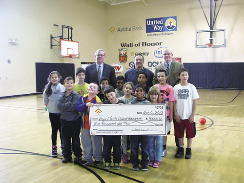 Hudson-based Avidia Bank donated $9,000 to the Boys & Girls Clubs of MetroWest. Pictured, left to right, back row, are: Frances X. Hurley, president, Boys & Girls Clubs of MetroWest; Gary Violette, director, Boys & Girls Clubs; Mark R. O’Connell, president and CEO, Avidia Bank; and club members.