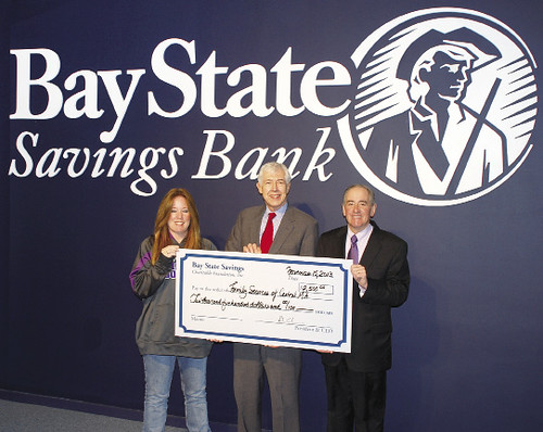 Worcester-based Bay State Savings Bank donated $2,500 to Family Services of Central Mass. Pictured, left to right, are: Diane Giampa, senior vice president of resources and marketing, Bay State Savings Bank; Stephen Pitcher, interim director, Family Services of Central Mass; and Peter Alden, bank president and CEO.