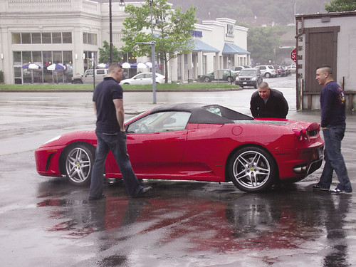 Worcester-based luxury car rental company Status Ride held a Police and Firefighter Appreciation Day. Police officers and firefighters were invited to drive cars from the company fleet. Pictured, from left to right, are: Holden firefighters and Michael Clark, owner of Status Ride, with a Ferrari 430 convertible.