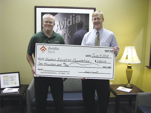 Hudson-based Avidia Bank donated $1,000 to Hudson Education Foundation. Pictured, from left to right, are: Mark R. O’Connell, president and CEO of Avidia Bank; and Glenn Maston, president of the Hudson Education Foundation.