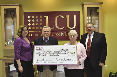Leominster Credit Union, donating $8,000, is the premier sponsor of Starburst 2013, a fireworks show at Doyle Field in Leominster June 15. Pictured, from left to right, are: Carol A. Southworth, interim president and CEO, Leominster Credit Union; Jack Hathaway, co-chair, Starburst committee; Nona Ojala, treasurer, Starburst committee; and Anthony A. Gasbarro, chairman of the board, Leominster Credit Union.