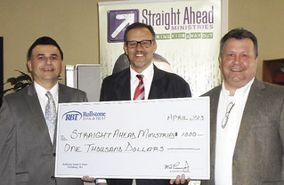 Worcester-based Rollstone Bank & Trust donated $1,000 to Straight Ahead Ministries (SAM) in Worcester to support workforce development programs for previously incarcerated youth and gang members. Pictured, left to right, are: Michael Bovenzi, vice president and commercial lender, Rollstone Bank & Trust; Scott Larson, president, Straight Ahead Ministries; and Thomas J. Slicklen, director of development, SAM.