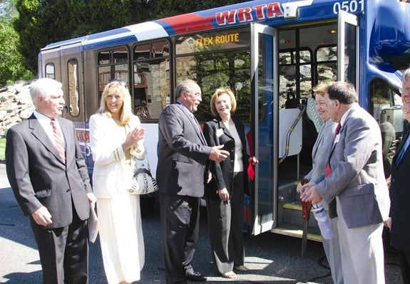 The Worcester Regional Transit Authority held a ribbon cutting ceremony for its new NorthWest FLEX Route recently. Pictured, from left to right, are: WRTA Administrator Stephen O'Neil, Assistant City Manager Julie Jacobson, State Rep. James O'Day, State Sen. Harriette Chandler, Mayor Konstantina Lukes and City Councilor Gary Rosen.