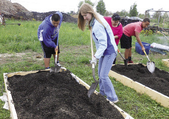 Gardner-based GFA Federal Credit Union helped Growing Places install a community planting bed at Sholan Farms in Leominster, part of the Mass. Development of Agricultural Resources’ Plant Something Day. Pictured: GFA employee Jessica Jones (front) digs with fellow volunteers.