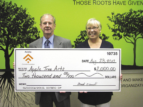 Hudson-based Avidia Bank donated $2,000 to Apple Tree Arts community school in Grafton. Pictured, from left to right, are: Jimmie Ames, assistant vice president and market manager, Avidia Bank; and Donna Blanchard, executive director, Apple Tree Arts.