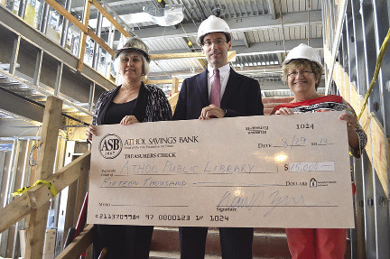 Athol Savings Bank donated $15,000 to the Athol Public Library building project. Pictured, left to right, are: Debra Blanchard, director, Athol Public Library; Dan Zona, president and CEO, Athol Savings Bank; and Deb Vescovi, the bank’s senior vice president.
