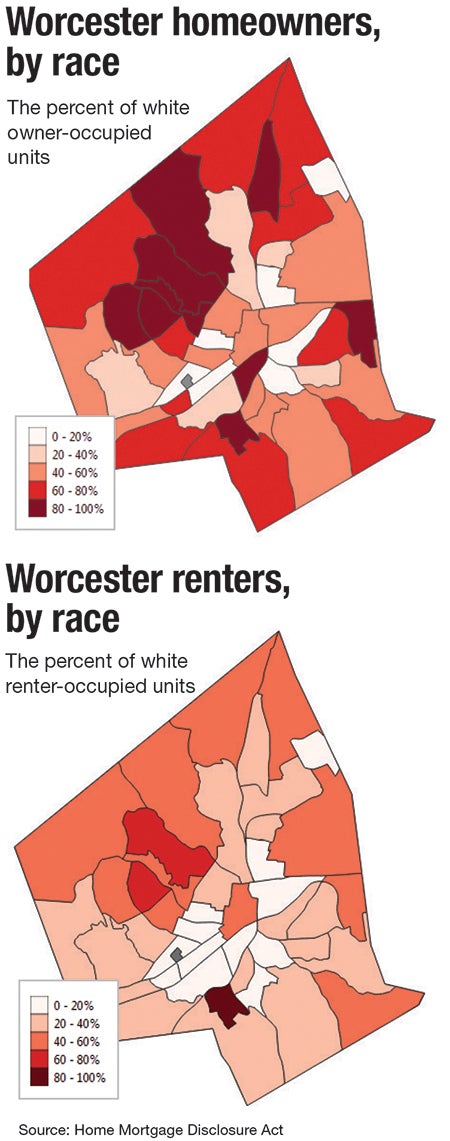 These poorer neighborhoods are some of the most racially diverse in Central Mass. In Worcester, for example, the top 10 U.S. Census tracts by income have 90% white homeowner populations, while the bottom 10 are 65% white.