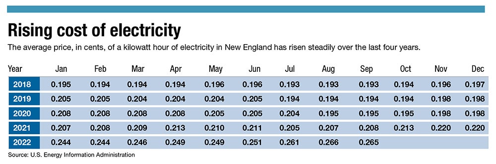 Electricity prices are going up. There’s no avoiding that. National Grid requested a price hike because of the rising costs of electricity coming from power plants, thanks to global issues emanating from the War in Ukraine. National Grid electricity prices are up 60% from last winter, and natural gas prices are 20% more than this time last year, according to the company. On Oct. 27, Eversource Energy President and CEO Joe Nolan wrote a letter to President Joe Biden, warning him the short natural gas supplies could soon cause outages in New England.
