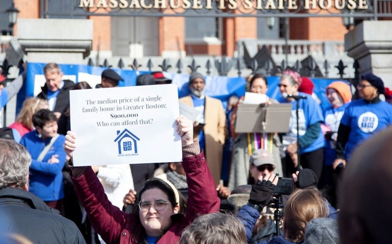 “We see the tumbling, crumbling downfall of our housing,” said Rev. Lydia Shiu, director of social justice and action at Reservoir Church in Cambridge. “This is a basic human right. Why, in our great nation with a powerful economy as it seems, are we seeing so many struggling on the streets, struggling to pay rent, struggling to buy a home? This is not just a housing crisis. It’s a human crisis.”