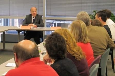 Phil Niddrie, the city’s business retention manager and member of the Workforce Investment Board, told McGovern that the House of Representatives cut funding in its budget for worker training grants and asked what McGovern could do to help.