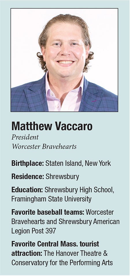 Matthew Vaccaro is a founding member and president of his family’s Worcester-based company, Masis Staffing Solutions. The Vaccaro family has always shared a lifelong passion for baseball, which includes decades of coaching experience for the Shrewsbury American Legion Post 397 baseball team. In February, the Vaccaro family made the decision to purchase the collegiate futures baseball team the Worcester Bravehearts from its original owners, the Creedon family. As now president of the Bravehearts, Vaccaro is excited to bring the Bravehearts’ legacy into a whole new era of local entertainment.