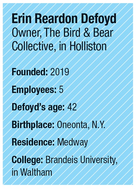 Erin Reardon Defoyd is the owner and operator of The Bird & Bear Collective, two workspaces in Medway and Holliston. The Medway outpost is a rustic New England barn, ideal for conferences, photoshoots, and events. By contrast, Bird & Bear’s downtown headquarters in Holliston functions as a cozy nest or den, where community members can gather for meetings, workshops, pop-ups, and productivity power hours. As a small business owner, Defoyd has forged her own path, leveraging powerful insights gleaned from more than a decade of corporate experience.
