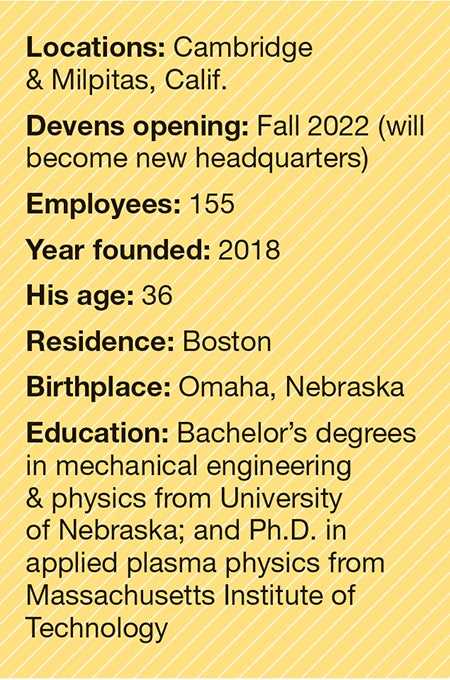 Over the next year and a half, Commonwealth Fusion Systems is building a $300-million, 47-acre headquarters in Devens, in its $1-billion, long-term effort to make fusion – an emission-free technology with no waste products – the default energy source on Earth, using its SPARC fusion machine. CEO Bob Mumgaard spoke with WBJ about the effort thus far.