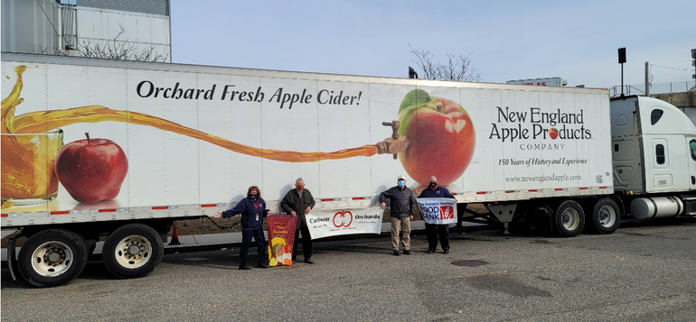 I was watching the Channel Five news last April or May, when WCVB ran a major fundraising drive for GBFB. Food insecurity early on in the pandemic was a growing concern. We had the resources, and we started filling jugs with cider and our Carlson’s lemonade, which we make in the summer, to donate to the food bank back in the spring.