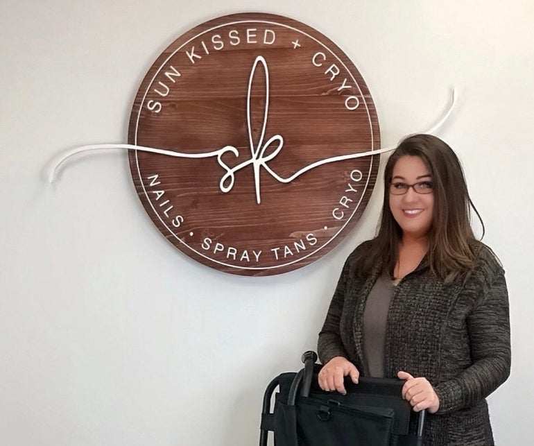 The original name for my business was Sun Kissed Tan & Spa. We had two tanning beds, spray tanning and nail services. Spray tanning was about 70% of the business. Then I started to offer cryo services with this machine called Cryoskin, which is essentially a small dose of body contouring. I’ve been doing that for the past year, and that is what inspired me to go for a bigger space. It is an hourlong process, and I was working longer hours, so I needed more staff.