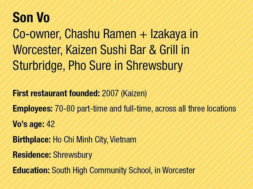 Son Vo owns three Central Massachusetts restaurants with three different sets of partners: Kaizen with his best friend from high school; Chashu with another friend; and Pho Sure with one of his sisters. In November, a corporation owned by Vo and three of his sisters bought for $1.4 million the shuttered Wexford House on Shrewsbury Street in Worcester from Richard Cravedi, with plans to move Pho Sure there in order to save on their lease payments.Â