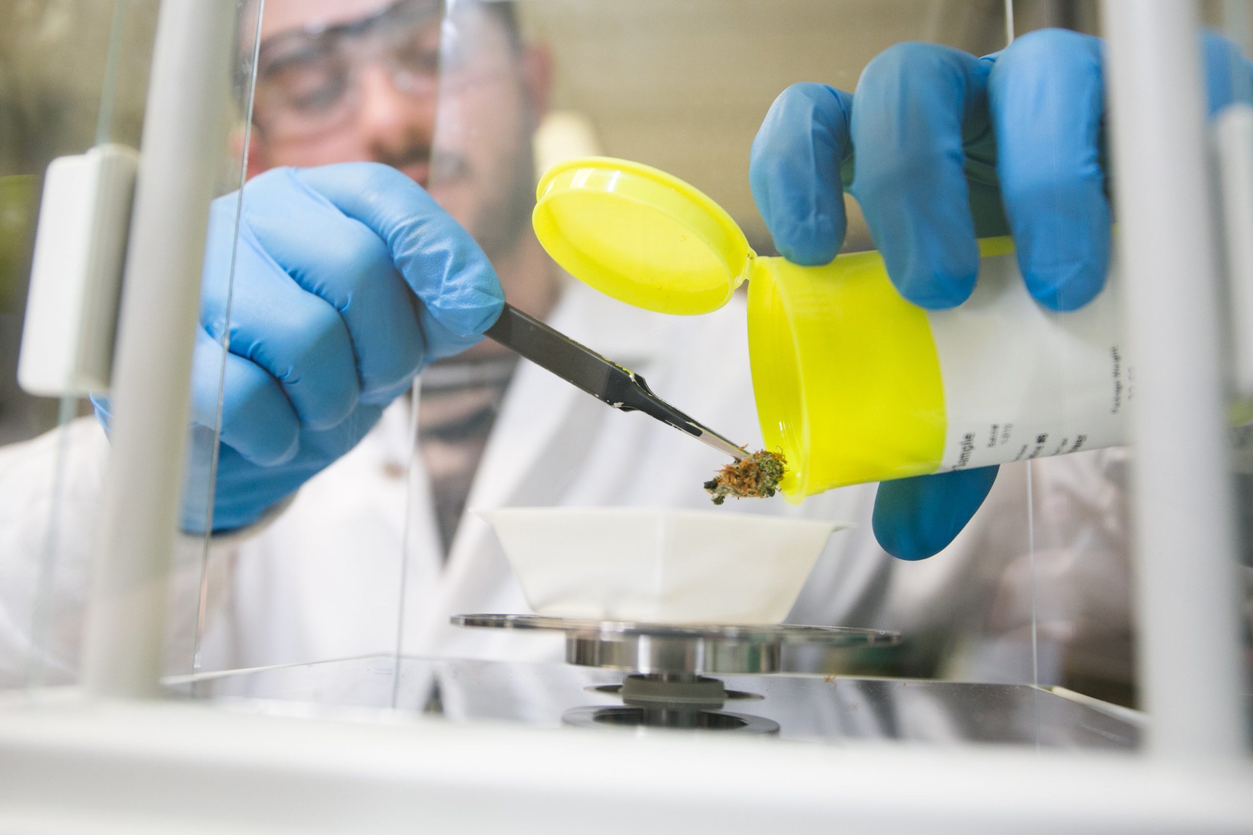 What they will do is they will collect a sample from their grow and that will be considered a batch, and they will bring us enough of the sample that we’re able to run all of the tests required by the state. Then, usually, we have some leftover in case there’s any irregularities or we need to run a test again.