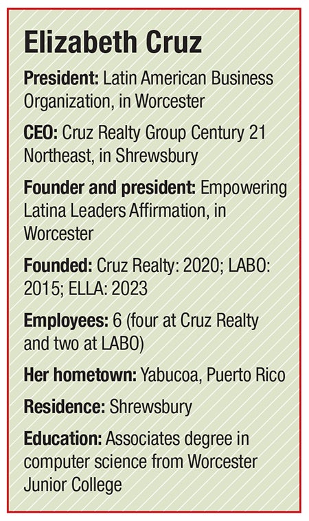 Elizabeth Cruz is a consummate people person. She wears many hats in the Greater Worcester business community after following divergent career paths in software consulting and real estate in the early 1990s. This led her to her other passion: advocacy for other Latino business people.