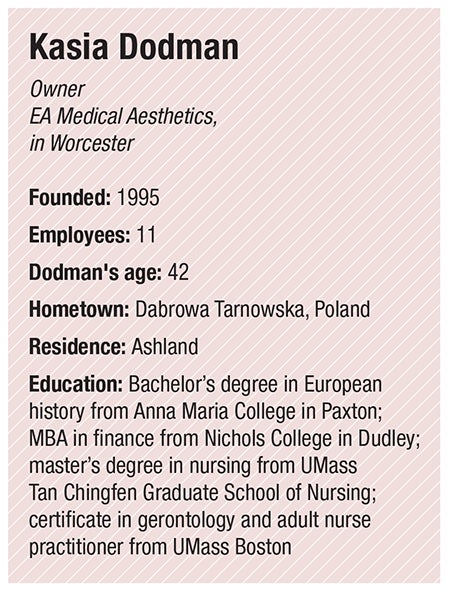Kasia Dodman’s life has been a series of unexpected twists and turns. An immigrant from Poland, Dodman had no family in the U.S., no money, and could not speak a word of English when she first moved to Worcester. She worked hard and became a successful finance professional before obtaining her nursing degrees and transforming her career as an oncology nurse. Today, Dodman owns and operates EA Medical Aesthetics, a medical day spa in Worcester specializing in facials, fillers, and lasers.