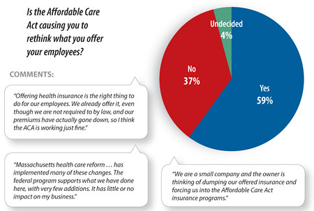 The Patient Protection and Affordable Care Act — known by many as “Obamacare” — has generated enough controversy through its complexity and in the way it has been thrust at the center of the partisan struggles in Washington over the federal budget and the debt ceiling. Nonetheless, its impact is being felt among businesses. Most respondents to last week’s poll said it’s causing them to rethink their health insurance offerings.