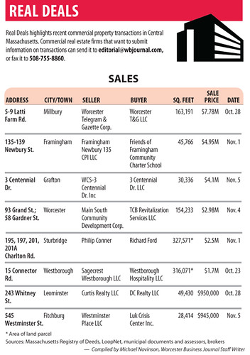 Real Estate Real Deals: Nov. 11 By WBJ Staff November 11, 2013 Share Copy URLEmailFacebookTwitterLinkedin Read more Real Deals: Sept. 16 Real Deals: Sept. 30ADVERTISEMENT Real Deals: Oct. 14 Real Deals: Oct. 28 Real Deals: Jan. 6, 2014 Learn more about:Real Estate – Digital Partners -