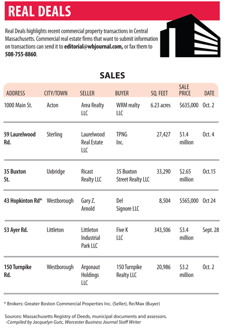 Real Estate Real Deals: Oct. 29 By WBJ Staff October 29, 2012 Share Copy URLEmailFacebookTwitterLinkedin Read more Real Deals: Oct. 1 Real Deals: Oct. 15ADVERTISEMENT Real Deals: Nov. 26 Real Deals: Dec. 10 Learn more about:Real Estate – Digital Partners -