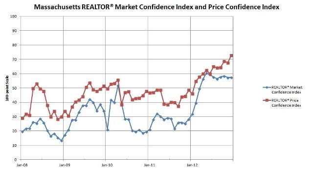 The confidence of Massachusetts Realtors consistently increased throughout 2012, according to the Massachusetts Association of Realtors (MAR).