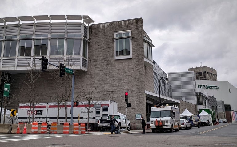 The DCU Center space is expected to open Thursday if needed for less-severe coronavirus patients. About 500 healthcare workers have signed on to help staff the center, according to City Manager Edward Augustus.