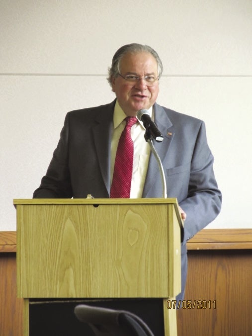DeLeo explained to manufacturing industry leaders how an economic development bill passed by the Legislature in July will provide funding for workforce and technological development.