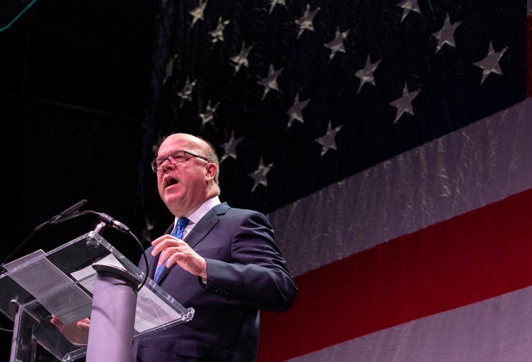 U.S. Rep. James McGovern of Worcester said that the Republican Party has embraced conspiracy theories and misinformation and lashes out at any one who disagrees as “pedophiles and murderers.” He told attendees of his experiences on the U.S. House floor during the violence of Jan. 6, 2021, and said those “very same people” are now trying to rig future campaigns.