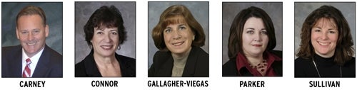 Rollstone Bank & Trust of Fitchburg has promoted five of its employees: Marianne Connor, Nancy Gallagher-Viegas, Katherine Sullivan, Wayne Carney and Roberta Parker.