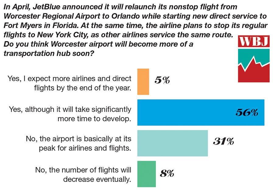 Despite these rough overall feelings, readers weren’t all doom and gloom. Nearly 80% said the economy performed at or above their expectations for the year so far. The national bank failures didn’t really impact them or their confidence in the U.S. financial system. The labor market remains strong. The performance of their individual businesses is largely either at or above expectations. Their long-term outlook for the region’s business community remains optimistic, particularly as it relates to new real estate developments, the life sciences industry, and the Worcester Regional Airport.