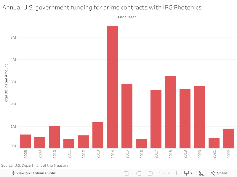 The most recent government agency to contract with IPG is the U.S. Department of Commerce, which purchased a $25,000 laser for the National Institute of Standards and Technology on April 7. The U.S. Navy made two orders in early 2021 with end dates scheduled for March 2, 2022, after Russia had begun its assault on Ukraine. This includes a $750,000 order for the company’s fiber lasers, which were sent to the Naval Surface Warfare Center in Dahlgren, Va. An additional $85,000 order for a laser pulsing shaping system was made by the Navy during this time, an order with a scheduled end date of June. The Navy confirmed the purchases.