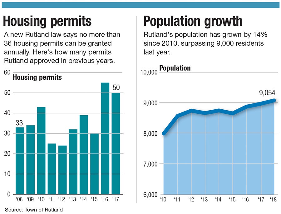 Rutland has seen its population jump past 9,000, up nearly double since 1990. The town is ready to pump the brakes a bit on that growth, voting in May to cap the number of new housing permits per year.