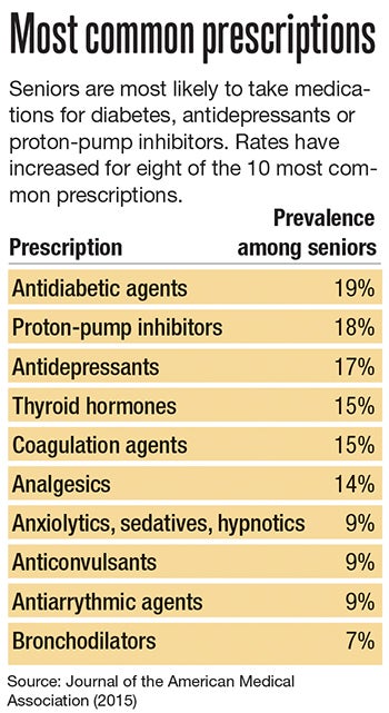 In 1999 and 2000, 84% of seniors said they took a medication, according to a 2015 study in the Journal of the American Medical Association. By 2011 and ‘12, it was 90%.