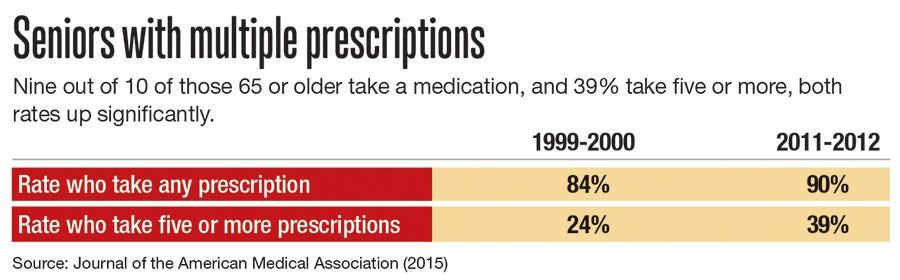 Seniors have long had higher rates of taking multiple medications, but in the past decade or more, usage has spiked.