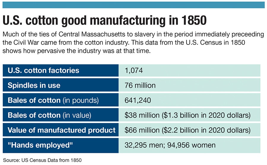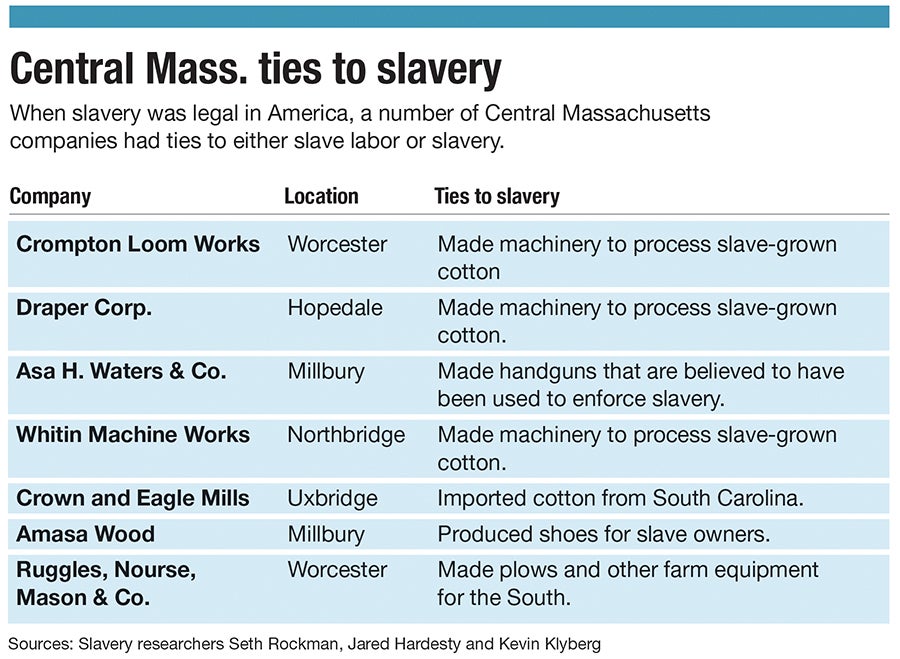 The Central Massachusetts’ ties to slavery went beyond the textile industry, as slavery affected every part of the economy, Hardesty said.
