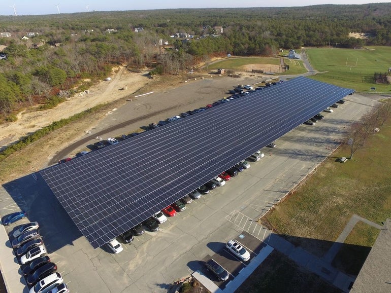 Hopkinton clean technology provider Solect Energy announced late Tuesday it has completed installation of a 663-kilowatt solar car canopy in the parking lot of Upper Cape Cod Regional Technical High School.