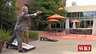 Gardiner and WBJ Editor Brad Kane square off in a game of cornhole