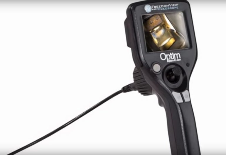 The device allows for safe visual inspections via a small scope camera inserted in a hard-to-reach area, like a fuel tank. Video and still images can be viewed on a small monitor attached to the scope.